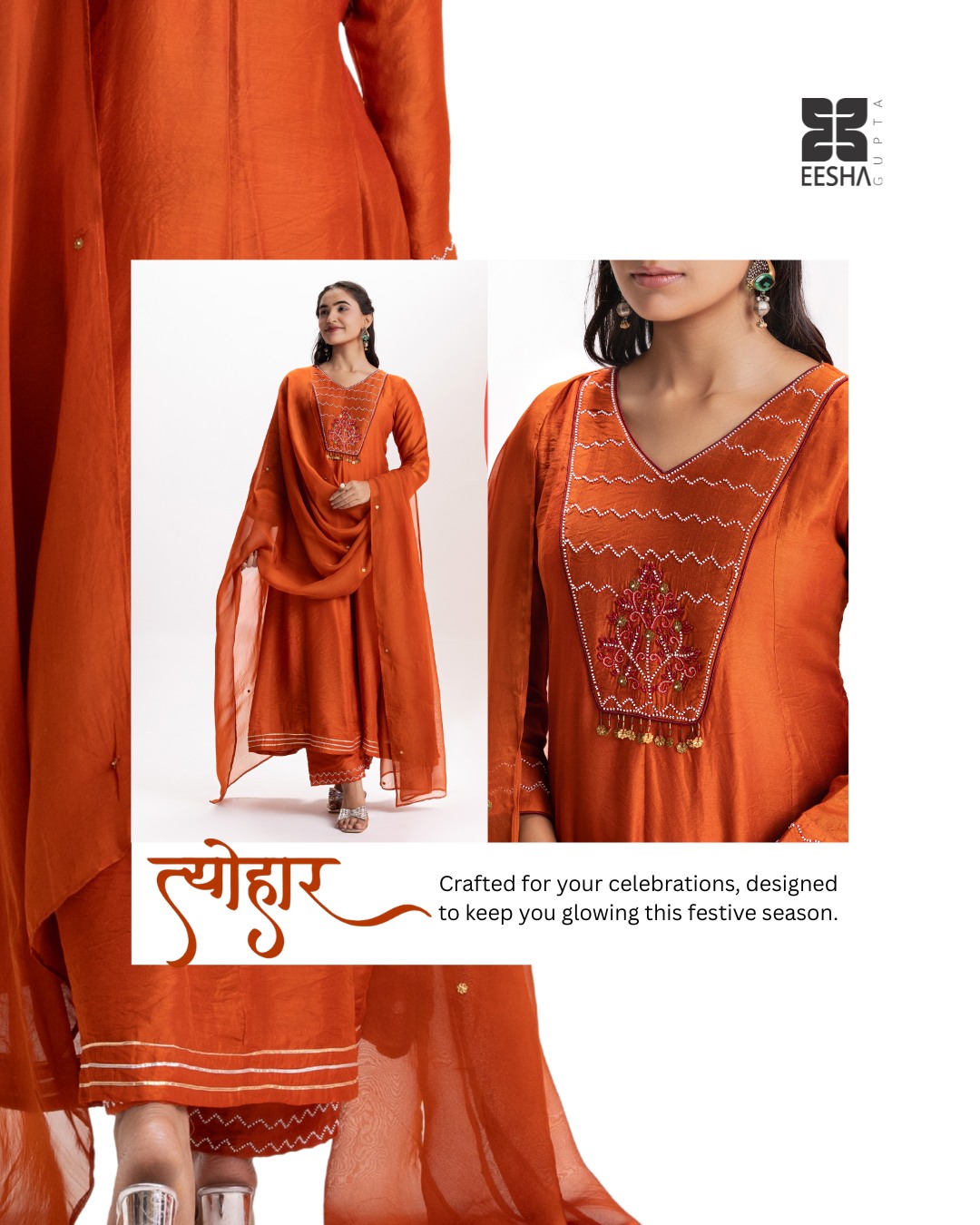 Design Eesha Gupta came to us with stunning fashion but a too-quiet online presence. So we turned the volume up. Like… way up.